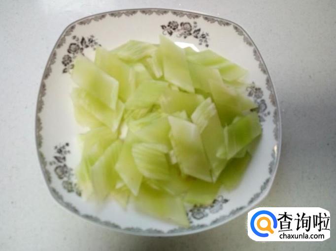 莴笋去皮,用水清洗干净,切成薄片,备用。
