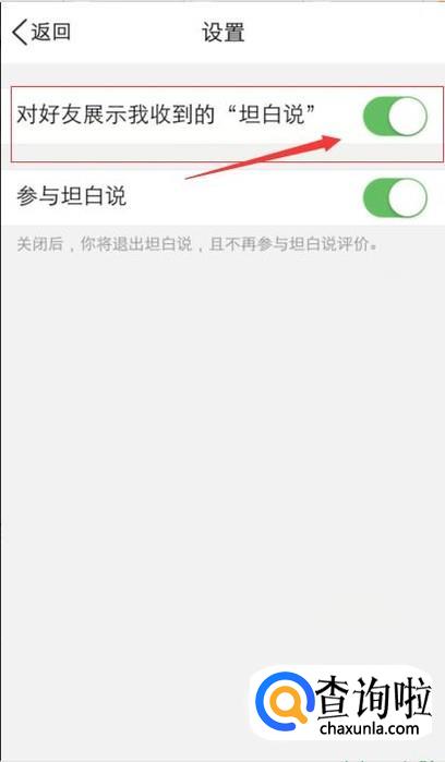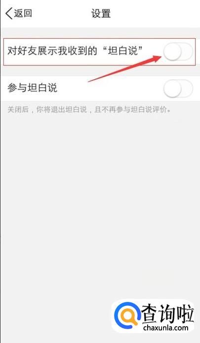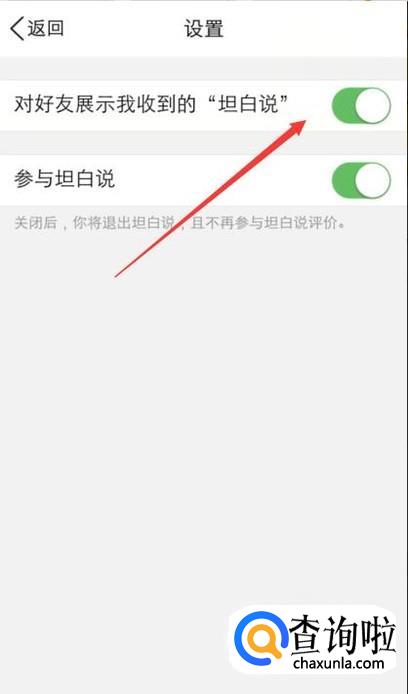 选择对好友展示我收到的“坦白说”按钮进行关闭;
