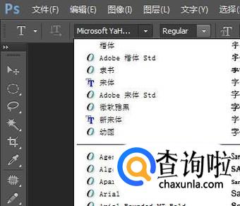 也可以选择文字工具,然后,在文字工具的属性栏中点字体下拉按钮,在弹出的各个字体中也能找到刚才安装的字体。