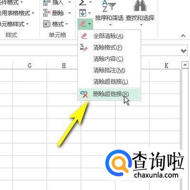 接下来介绍第二种方法,同样需要把所有超链接选中,接着,如下图所示,点击橡皮擦下拉按钮。