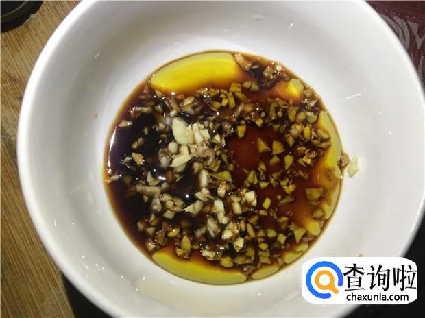 准备好适量的姜蒜,剁碎,放入碗中,再加入少许盐、花生油、酱油,搅拌均匀,这个配料是沾排骨吃的,非常好吃哦。