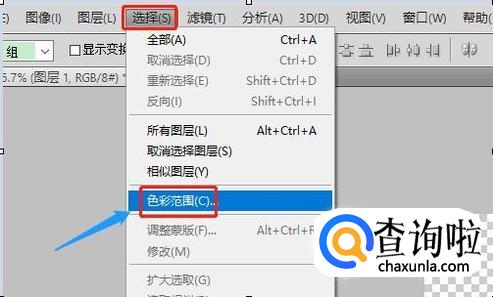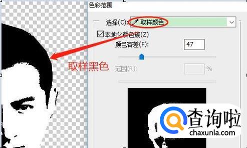 接着在工具栏依次点击"选择"-"色彩范围",在色彩范围对话框的取样颜色里,我们务必要选取图片里的黑色;