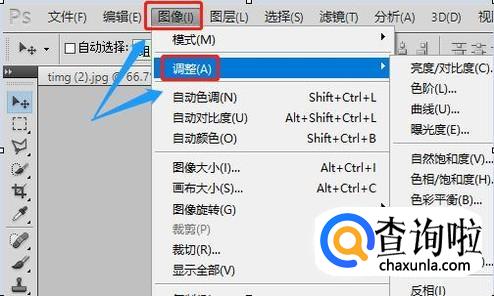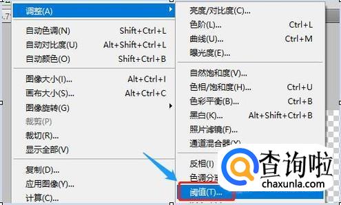 点击移动工具将头部移动到合适的位置,然后在上方工具栏点击"图像"-调整",在调整选项下找到"阈值",如下图
