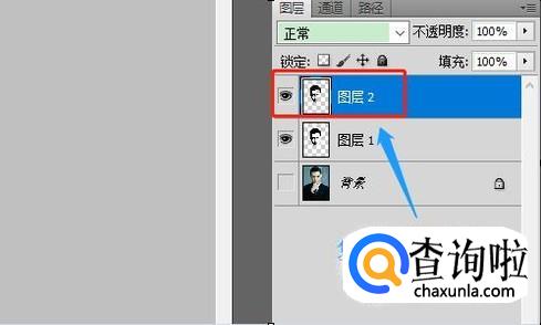 选取完成以后再次按住快捷键Ctrl+J复制新的图层2,如下图;然后我们在电脑桌面将星空图片拖动进来,此时右侧图层处又会增加新的图层,位于最上面,如图所示