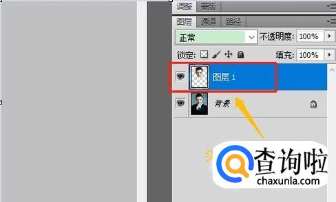 接着我们按住快捷键Ctrl+J,将头像部分摘出来新建一个图层,下图图层1就是,然后我们将背景图层隐藏(也就是去掉前面的小眼睛),此时我们就只能看到人物头部了