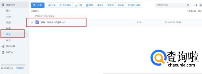 在百度网盘中,切换到【音乐】,如下图所示: