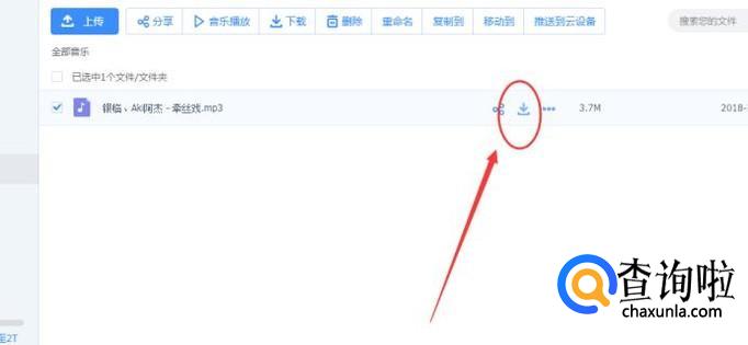 然后选中音乐,点击【下载图标】,如下图所示: