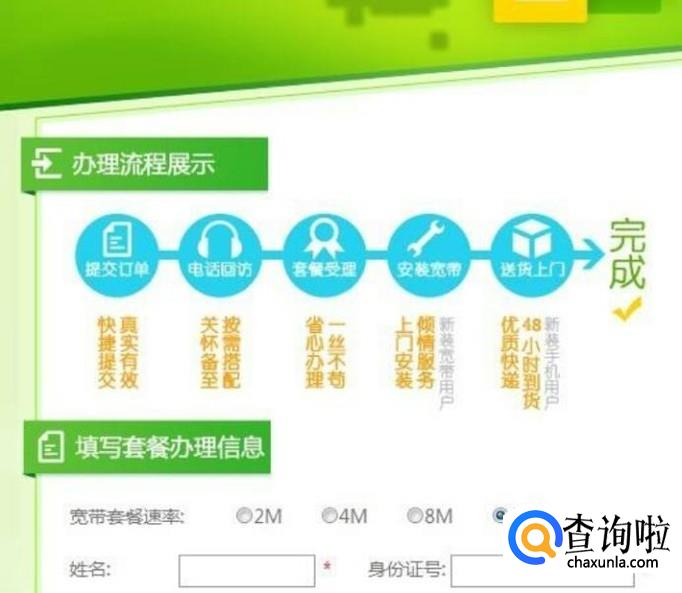 还有一种简单的办理方法,就是在网上预约宽带办理,网上预约时一定要准确无误填好自己的姓名、号码以及地址。但由于各个地方不一样,所以仅限某些地区。