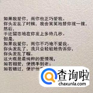 如果我爱你,而你也正巧爱我。你头发乱了时候,我会笑笑地替你拨一拨,然后,手还留恋地在你发上多待几秒。但是,如果我爱你,而你不巧地不爱我。你头发乱了,我只会轻轻地告诉你,你头发乱了喔。