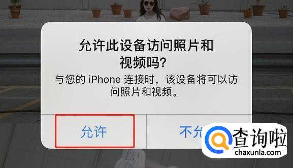 手机连接上电脑后,解锁iPhone之后,提示“允许此设备访问照片和视频吗”,选择“允许”。