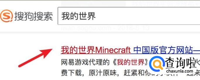 首先打开搜狗搜索,输入‘我的世界’进行搜索,点击打开官方网站。
