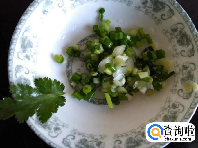 出锅装盘,将葱末撒在上面,放一片香菜点缀