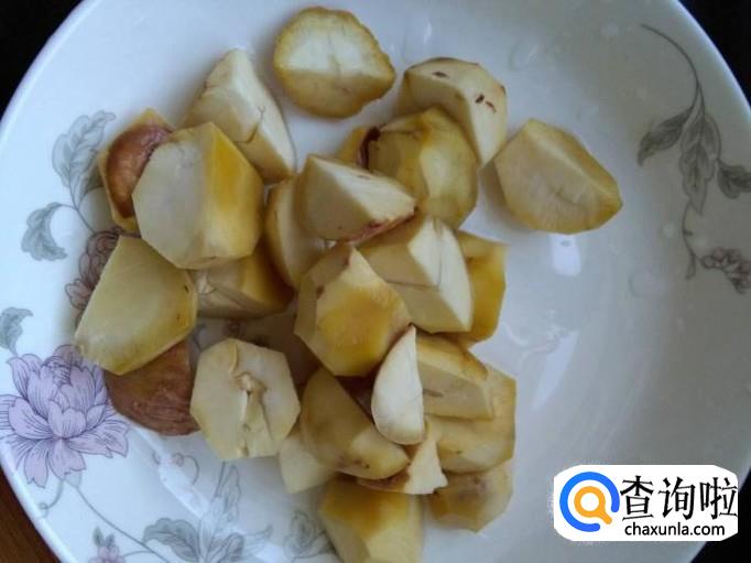 板栗洗干净后剥壳,然后将板栗稍微切小点