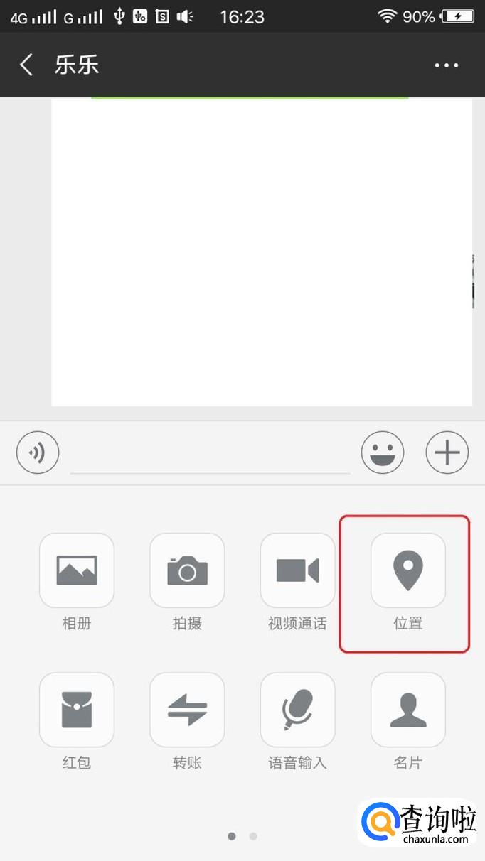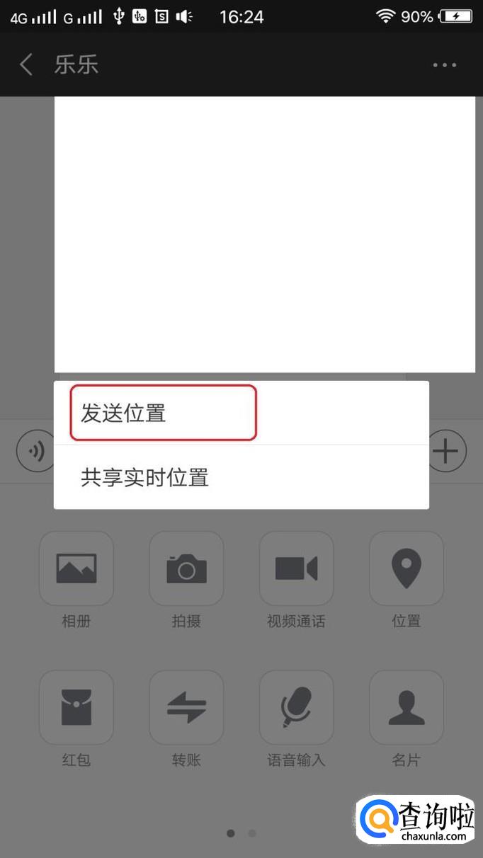 出来我们平时给朋友发照片和位置的面板,我们点击“位置”。