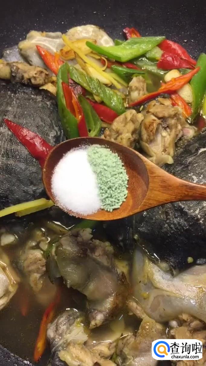 然后往锅中加入适量的盐巴和味精,如下图所示。