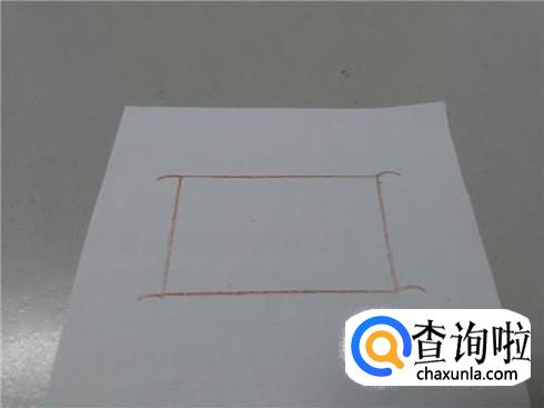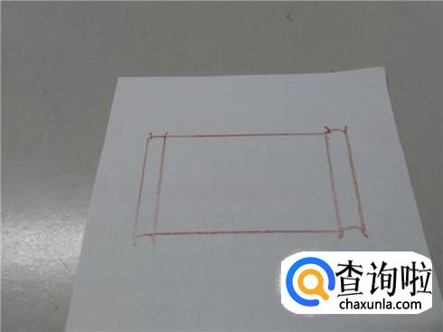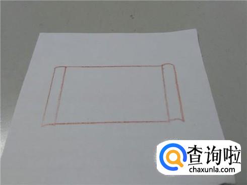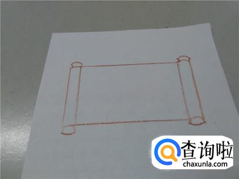 在长方形两边各画两条弧线,表示卷轴的上下两边。
