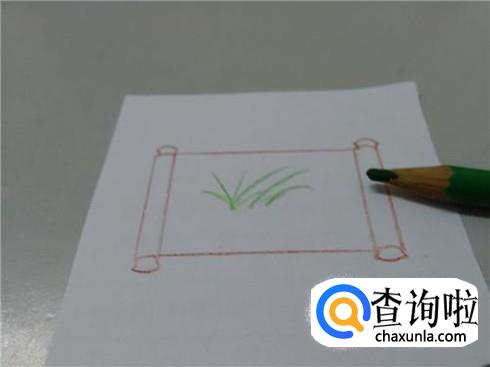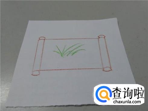 最后用绿笔在画面中间画几条长短不等的弧线,表示兰草,卷轴画就画完了。