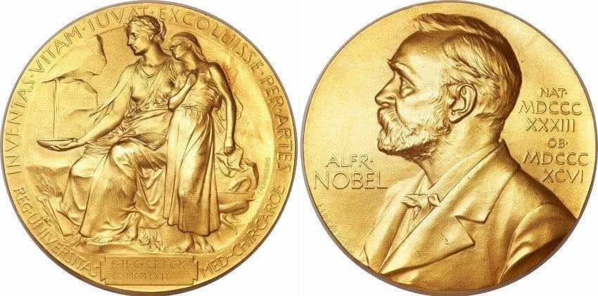 诺贝尔奖(瑞典语:Nobel priset,英语:Nobel Prize)是指根据诺贝尔1895年的遗嘱而设立的五个奖项,包括:物理学奖、化学奖、和平奖、生理学或医学奖和文学奖,旨在表彰在物理学、化学、和平、生理学或医学以及文学上“对人类作出最大贡献”的人士;以及瑞典中央银行1968年设立的诺贝尔经济学奖,用于表彰在经济学领域杰出贡献的人 。