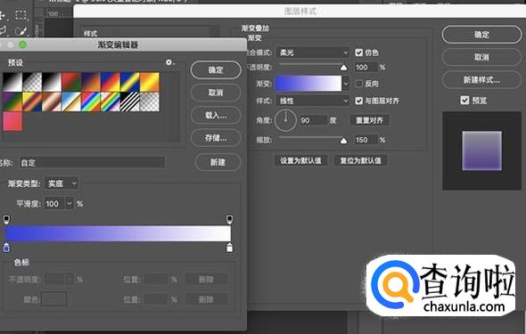 接着再添加一个渐变效果,这里我们添加的是紫色到白色的渐变,你可以自行进行调整。