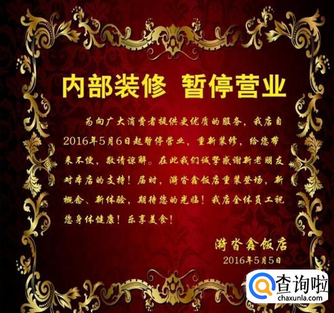 正文。xxx(店名),暂停营业的原因,暂停营业时间,开业时间。