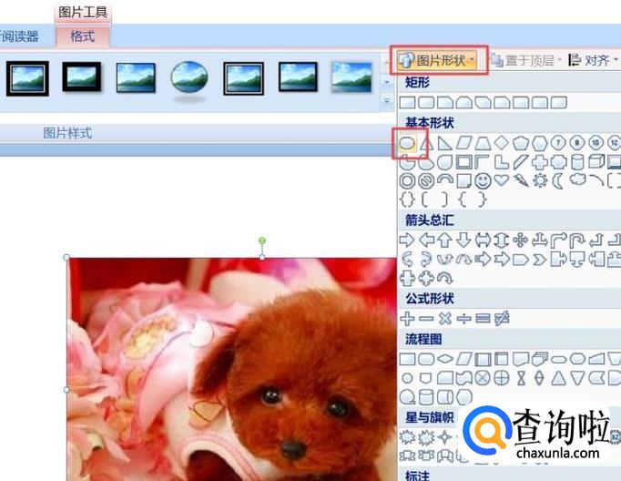 之后我们点击图片形状,弹出的界面,我们点击椭圆;