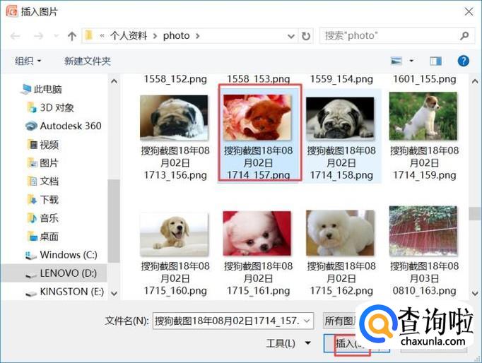 弹出的界面,我们选中一张图片,之后我们点击插入;