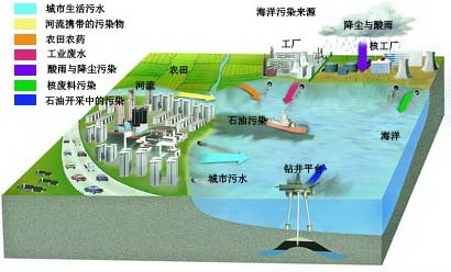 目前海洋污染的80%来自陆地,陆源污染物向海洋转移,是造成全球海洋污染的主要根源。陆地上形成的污染物,本应先在陆地处理,达到排放标准,再有限制地向海洋倾倒。但是事实上并非如此,大量未经处理的陆源污染物直接或间接进入海洋,且愈演愈烈。此外,来自大气层中的烟尘和一些化学物质也源源不断地进入海洋,某些国家沉放在深水区的放射性物质也有增无减。