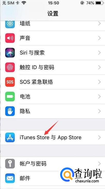 打开设置后,在里面找到iTunesStore与App Store点击进入。