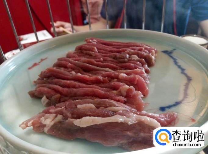 等到羊肉上来以后大家就可以开始涮羊肉了。这里他们所提供的羊肉也都是非常新鲜的。这种厚切的优质羊肉有一个特点,可以把盘子倒扣过来,一般这种羊肉都不会从盘子上掉下来就证明肉的品质是非常好的。我们可以把肉放在锅里涮上30秒到两分钟的时间就可以食用了。沾上调料就可以大块朵颐了。