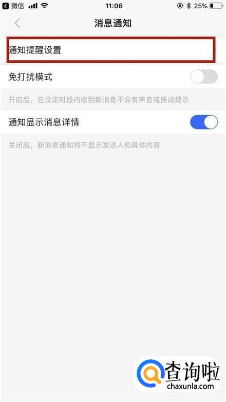 接着点击通知提醒设置,如下图所示。