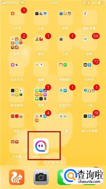 首先在我们的手机桌面上找到陌陌并点击它,如下图所示。