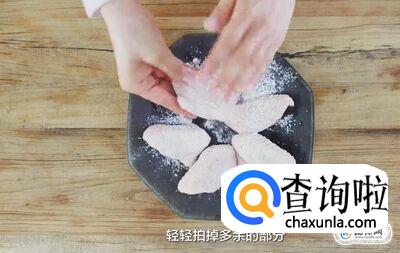 鸡翅先将表面水分吸干,均匀地撒上少量的盐和黑胡椒,揉搓入味后撒上一层淀粉,拍掉多余的淀粉。