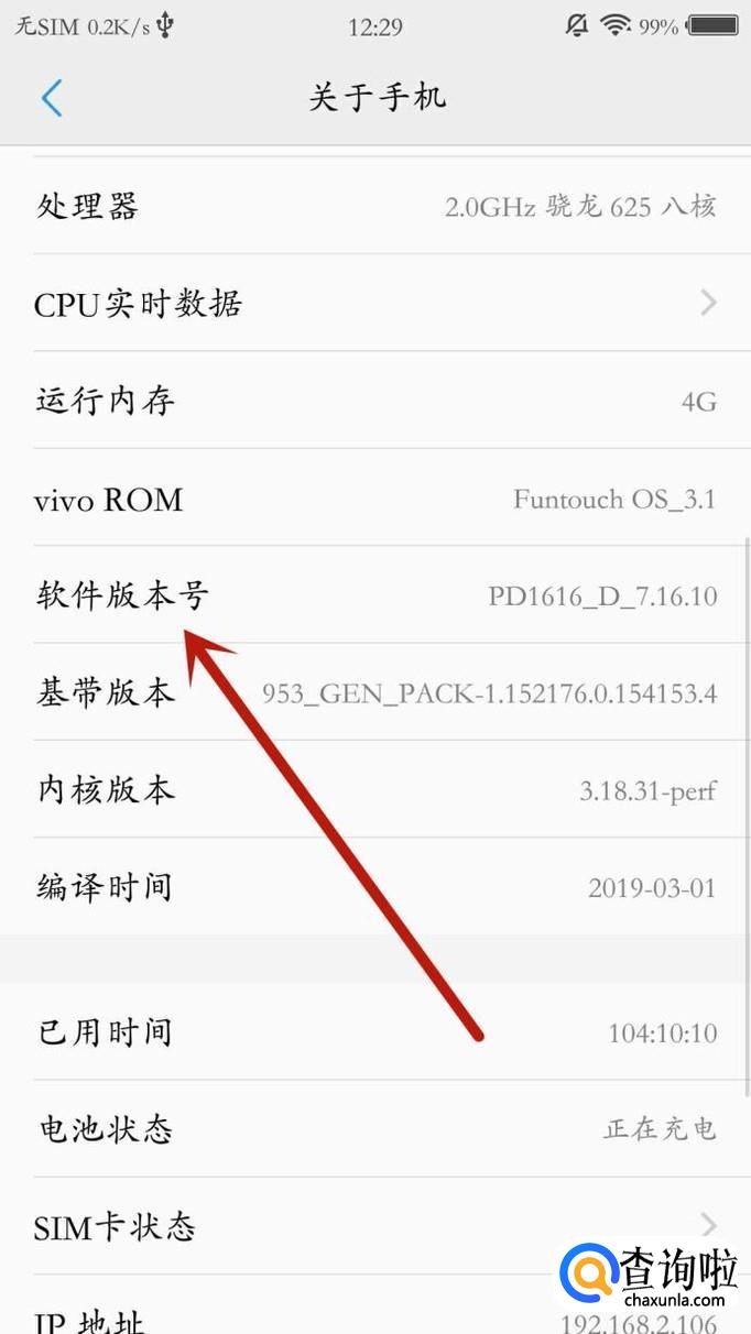进入之后,找到“软件版本号”点击“5~7次”打开“开发者选项”入口,如图所示。
