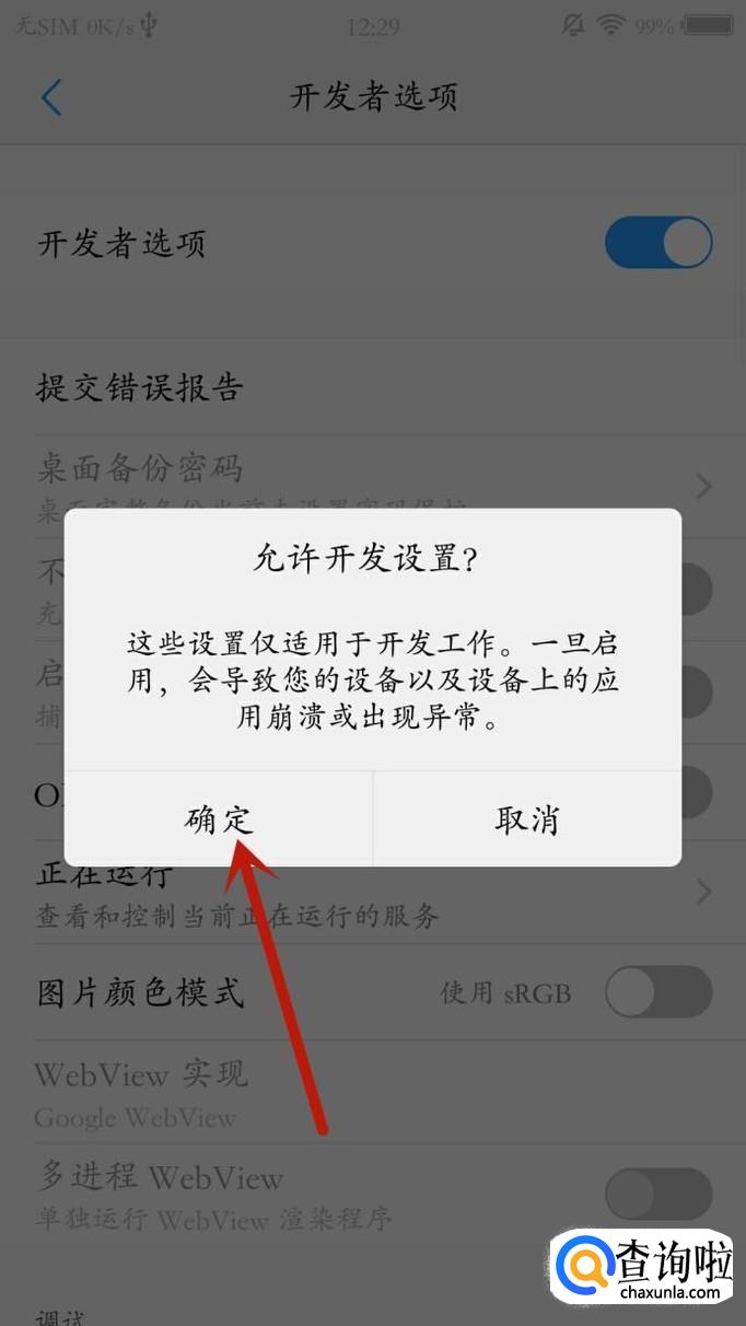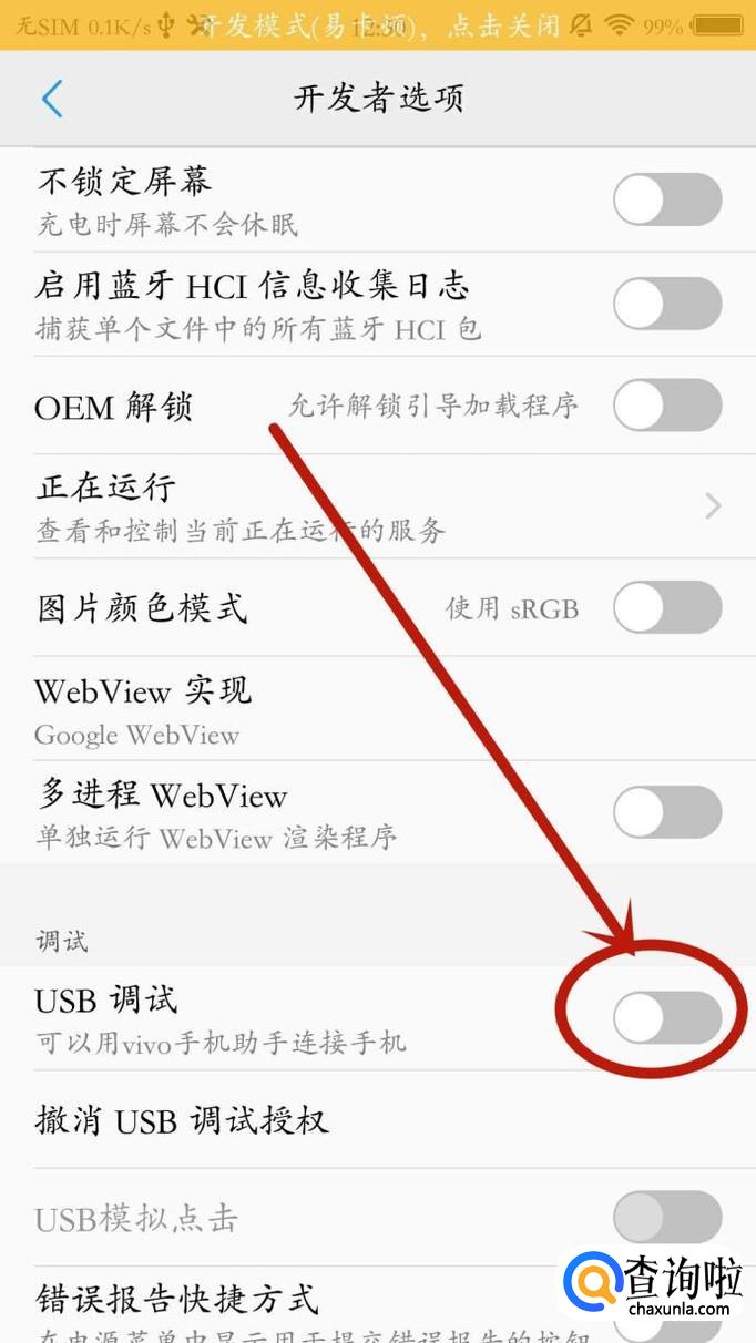 打开“开发者选项”之后,找到“USB调试”开关并点击一下。