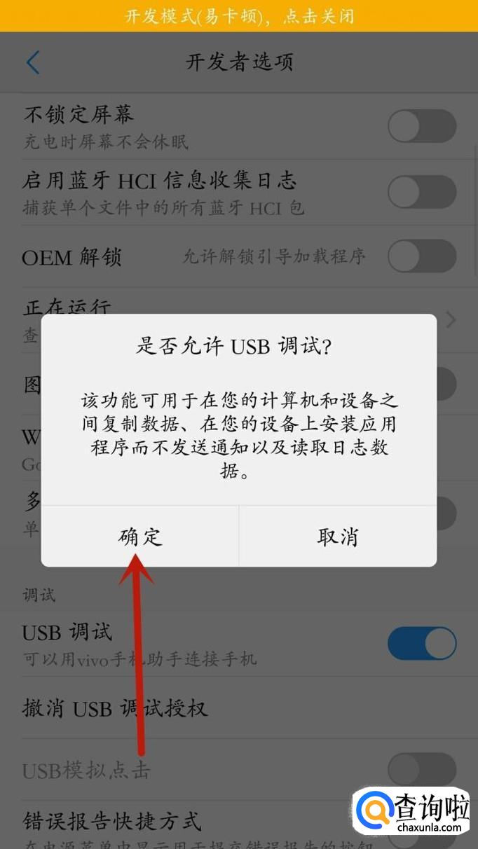 在出现的弹窗内选择“确定”即可打开“USB调试”,这样手机就可以与电脑进行连接。