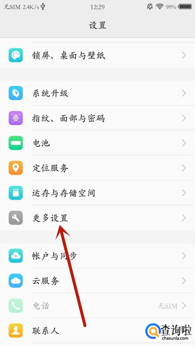 进入手机设置,选择“更多设置”命令,如图所示。