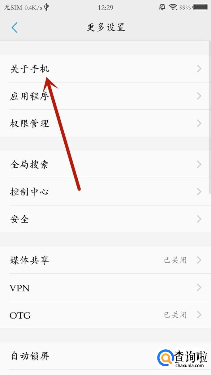 进入之后,点击“关于手机”,如图所示。