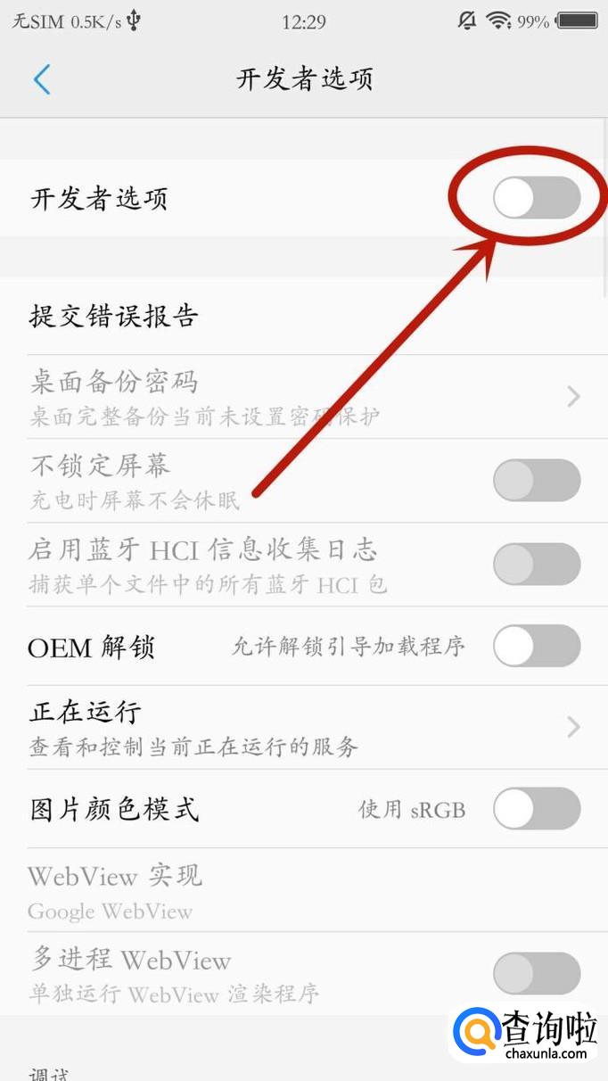 进入之后,点击图示位置的“开发者选项”开关,如图所示。