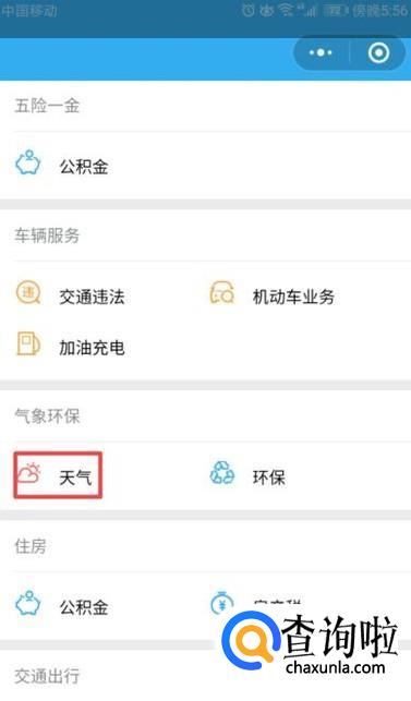 弹出的界面,我们点击天气;