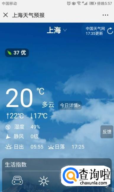 之后我们就可以看到天气预报了,如图所示。这个天气预报还是比较准的。