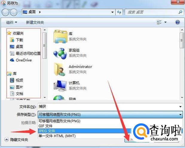之后会出现位置选项,选择好自己要储存的位置。点击下面的文件类型,选择Jpeg类型,然后点击下面的保存就可以了。
