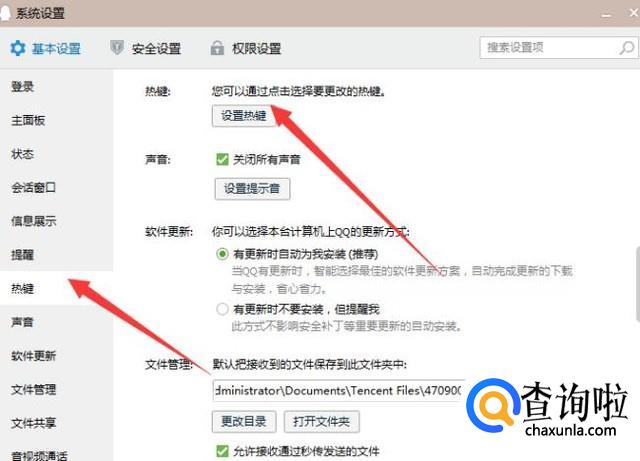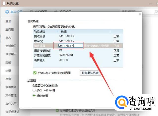 在左侧选项点击下面的“热键”,在右会出现热键选项,点击第一个“设置热键”