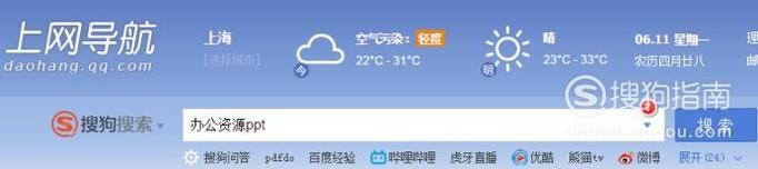 打开电脑,在搜狗浏览器中输入办公资源ppt,并点击搜索