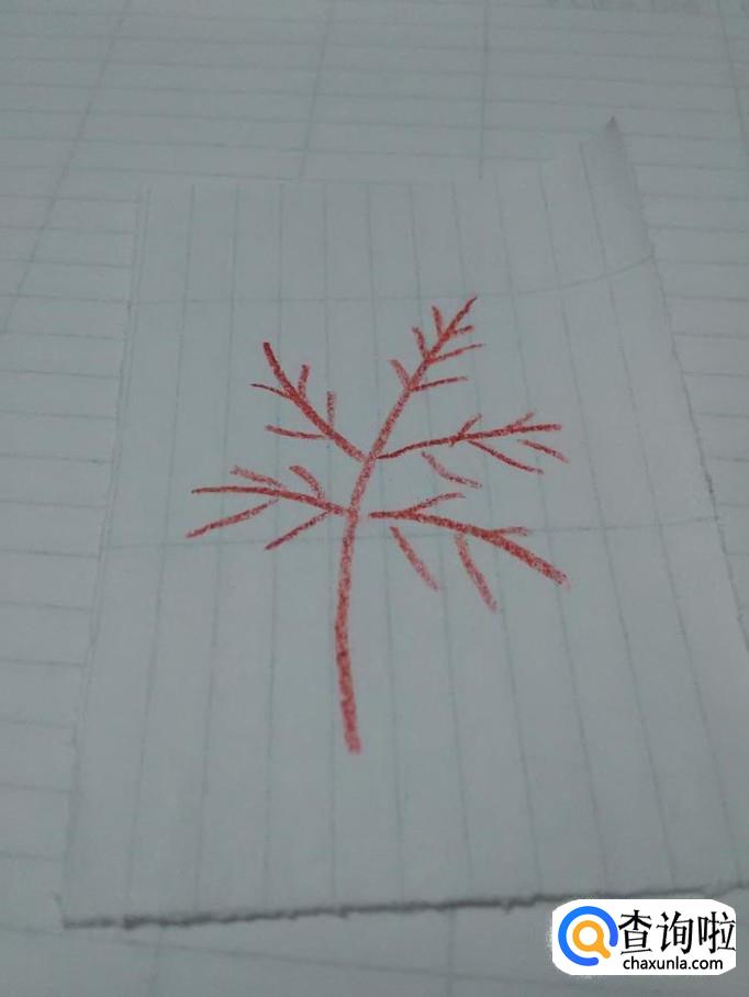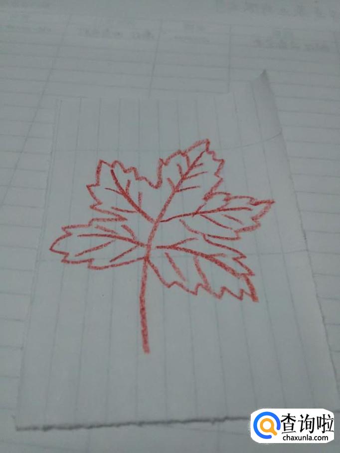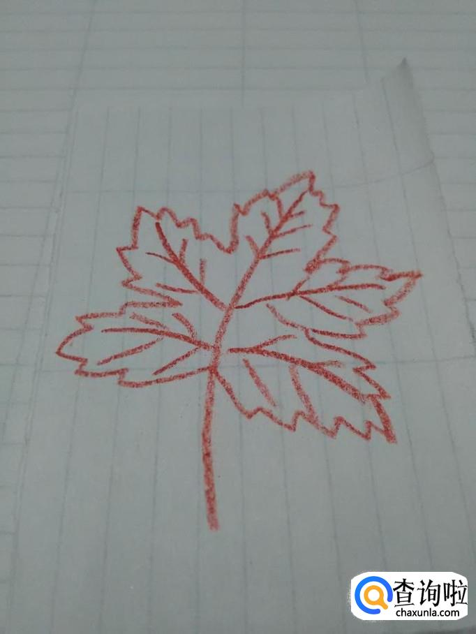 根据叶脉的长短,画出锯齿形的叶子边缘,枫叶就花画完了。