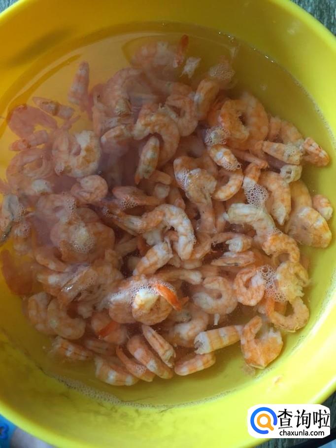 我们取一把虾米,放到碗里,加水泡洗干净;
