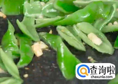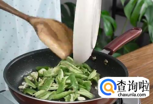 爆香姜蒜后青椒下锅,炒至7分熟。