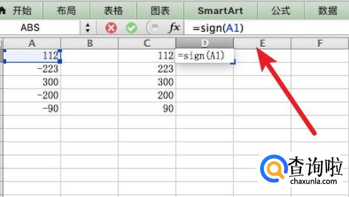 要得到正负符号,我们可以使用sign函数,参数同样是A1单元格。