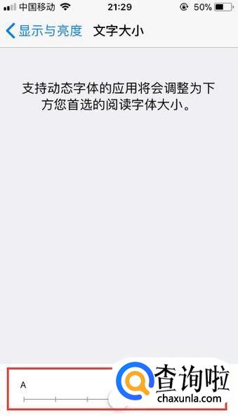 最后在文字大小页面,用户可以调节页面底部的圆形按键,这样就可以设置iphone6手机的字体大小了。