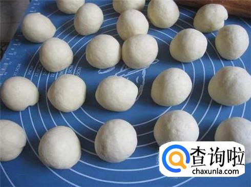 面团放置20分钟后,就可以把面团揉成一样大小的小圆球。同样的,把月饼馅料也揉成一个个同样大小的圆球。