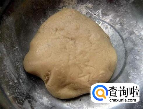 然后再加入适量的面粉,用刮刀搅拌均匀后,揉成面团。